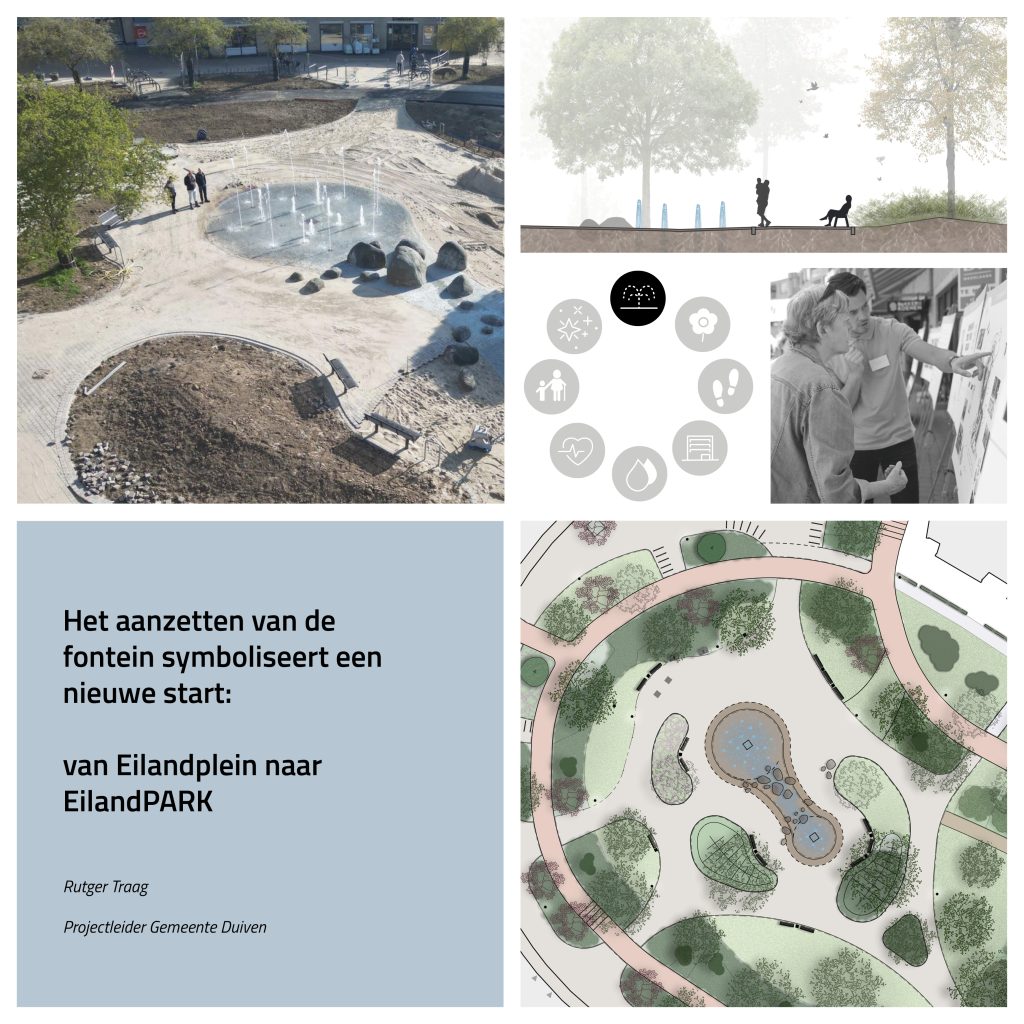 Het Eilandplein ligt in het hart van Duiven Zuid. Het is een drukbezochte plek voor jong en oud. Mensen komen er voor ontspanning of voor een bezoek aan de winkels. De fontein op het plein was aan vernieuwing toe en stond al een lange tijd uit. Het bouwen van een nieuwe fontein was aanleiding voor de gemeente om de inrichting van het hele Eilandplein eens goed aan te pakken, samen met alle bewoners en bezoekers van Duiven Zuid.