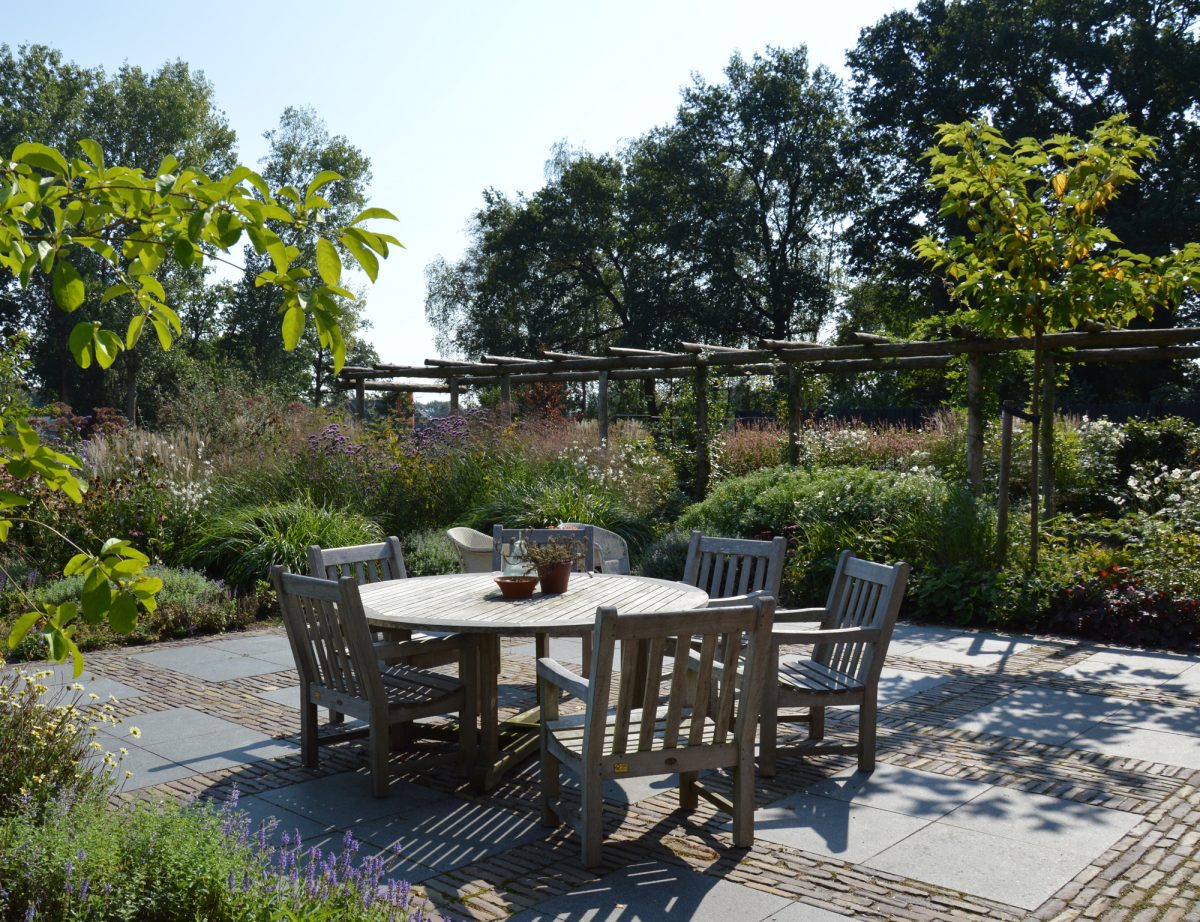 ODIN Landschapsontwerpers werd gevraagd een ontwerp te maken voor het nieuwe erf. Op het nieuwe erf was ruimte voor een nieuwe kapschuur, een paardenstal en een paardenbak. De opgave was om het programma op zorgvuldige wijze in het gevoelige Twentse landschap in te passen. De familie wenste eveneens een mooie boomgaard, een robuuste houten pergola, rijkbloeiende beplantingen, behoud van een karakteristieke kersenboom en een oude waterput naast het terras. In het ontwerp zijn die wensen vanuit de traditionele erfgedachte, maar met het gebruik van nu, vormgegeven.
